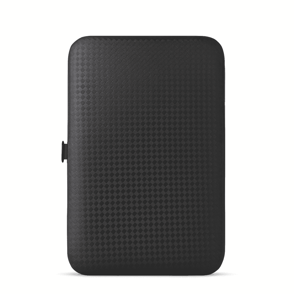 Portable Case: Elegant red-and-black travel case, ideal for travel or daily use.