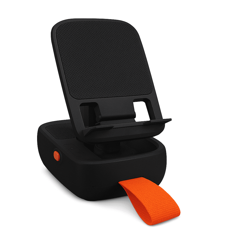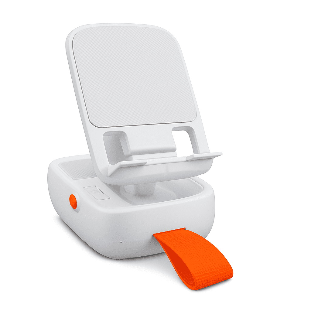 Stable Phone Docking: Features a dedicated cradle/stand designed to securely hold your smartphone upright for comfortable viewing, streaming, or video recording.