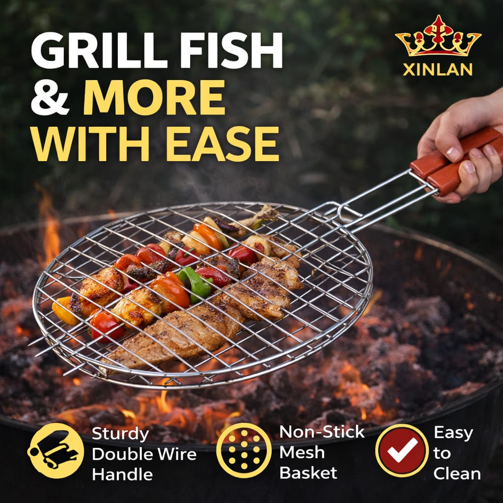 The basket features a long heat-resistant handle that provides a comfortable grip and keeps your hands safely away from the heat. Lightweight yet durable, it is ideal for outdoor barbecues, camping trips, picnics, and backyard grilling.