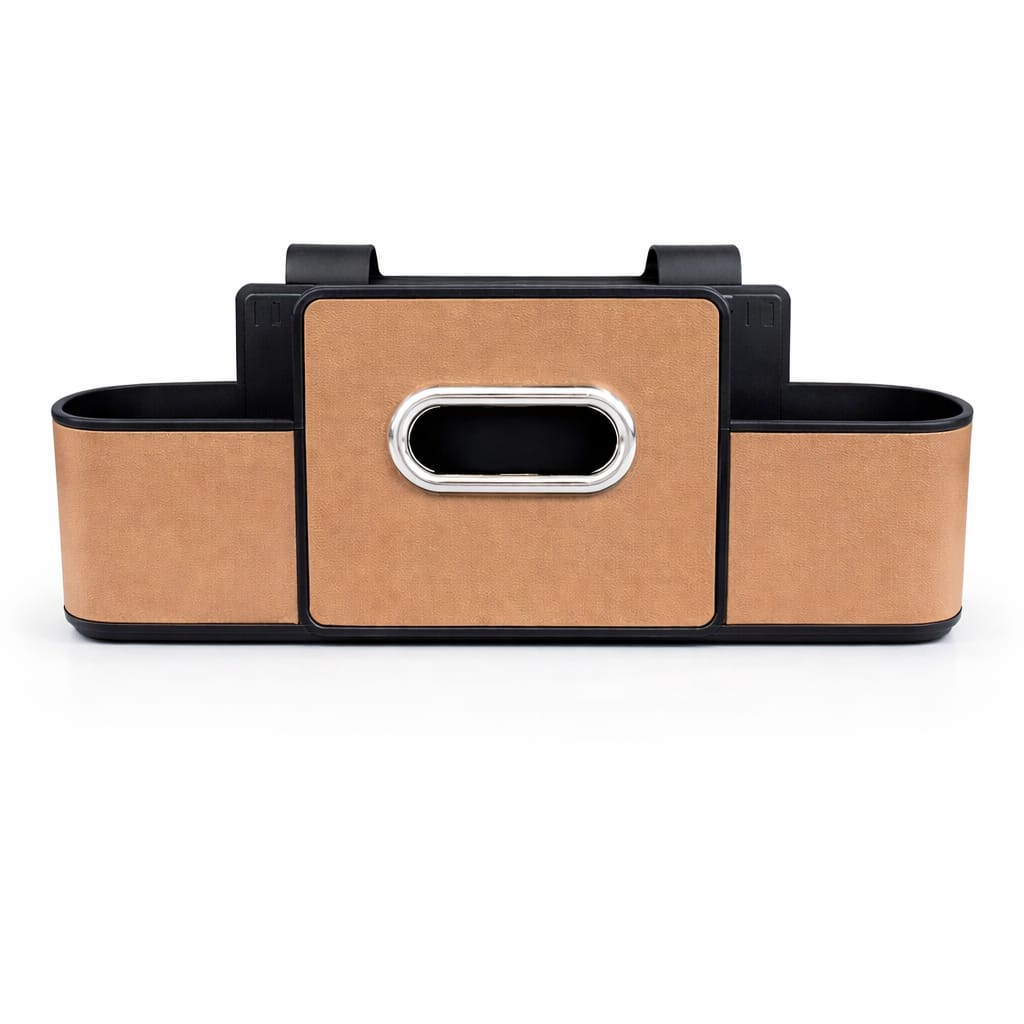 Featuring multiple compartments, it includes a tissue holder, cup holders, phone holder, and storage pockets for accessories. It also supports device charging, making it ideal for long journeys and daily commutes.