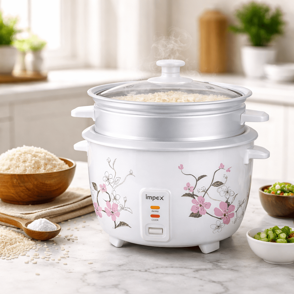 Experience the ultimate convenience in kitchen technology with the Impex RC 2801. This multi-functional appliance is engineered to help you make fluffy rice with ease while offering the versatility of a dedicated steamer function for healthier meal prep.