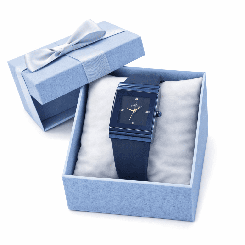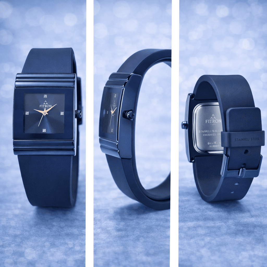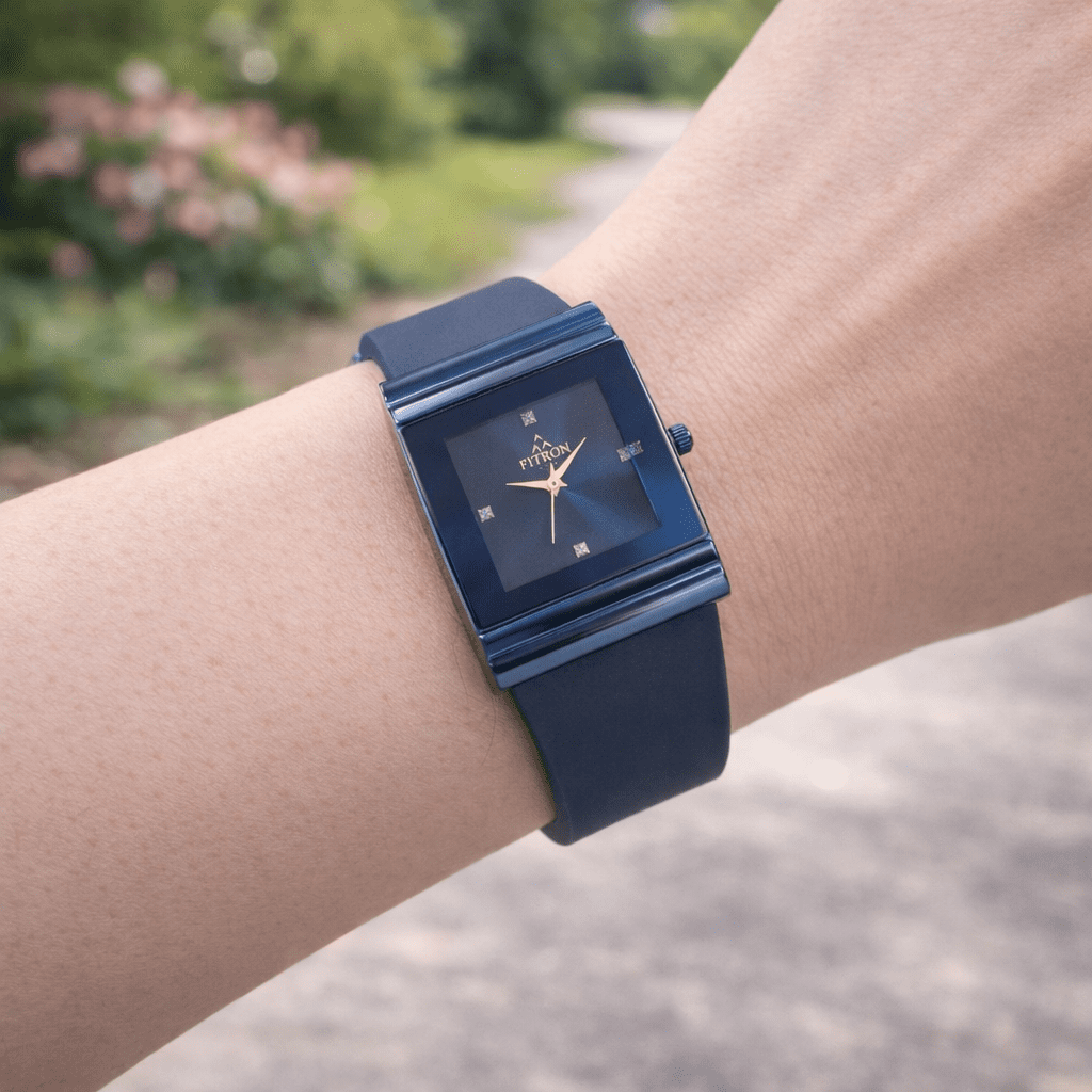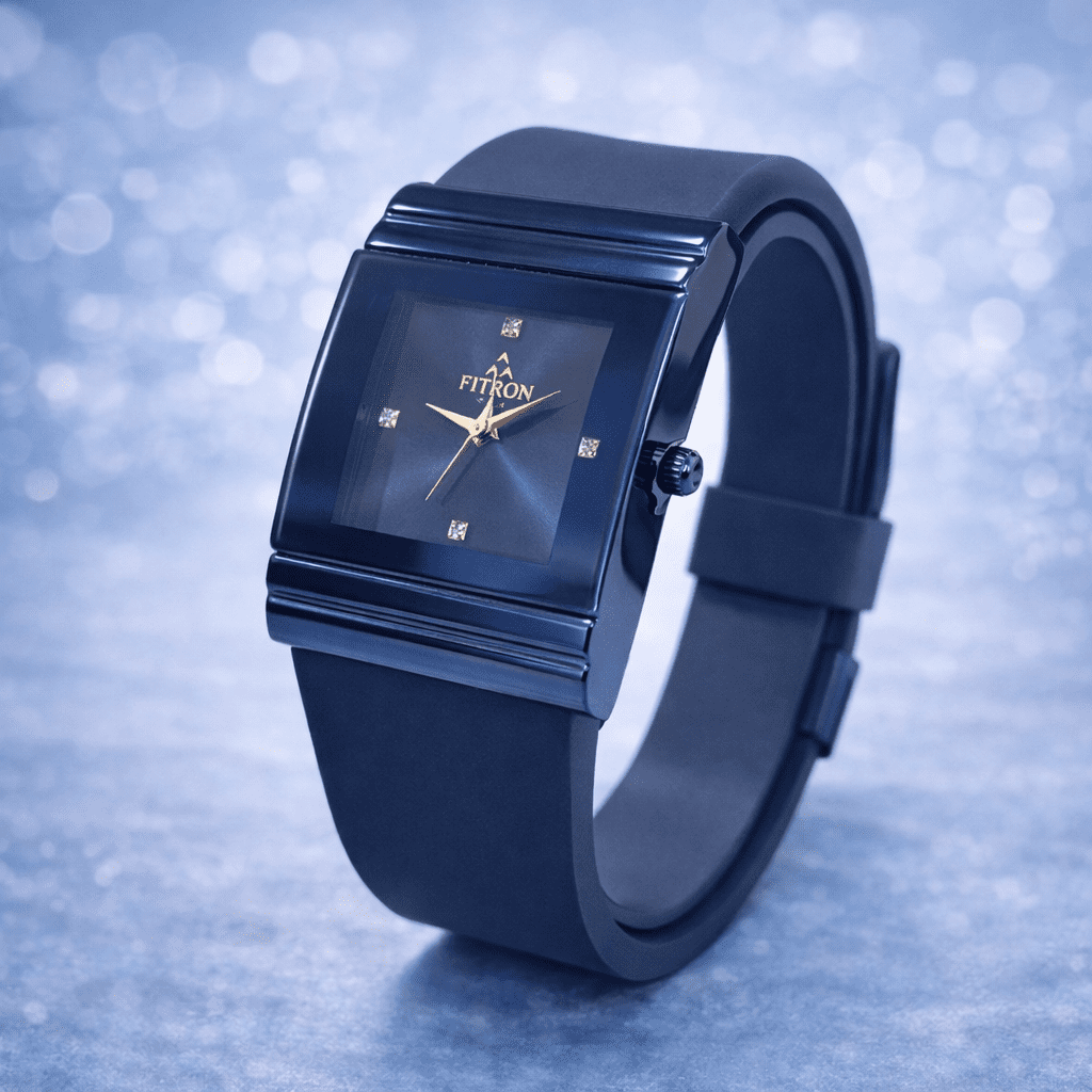 Enhance your modern style with this elegant FITRON women’s watch featuring a bold square blue dial and a sleek minimalist design. The deep blue tone combined with crystal-style hour markers and gold-tone hands creates a sophisticated and contemporary appearance, perfect for women who love stylish accessories.