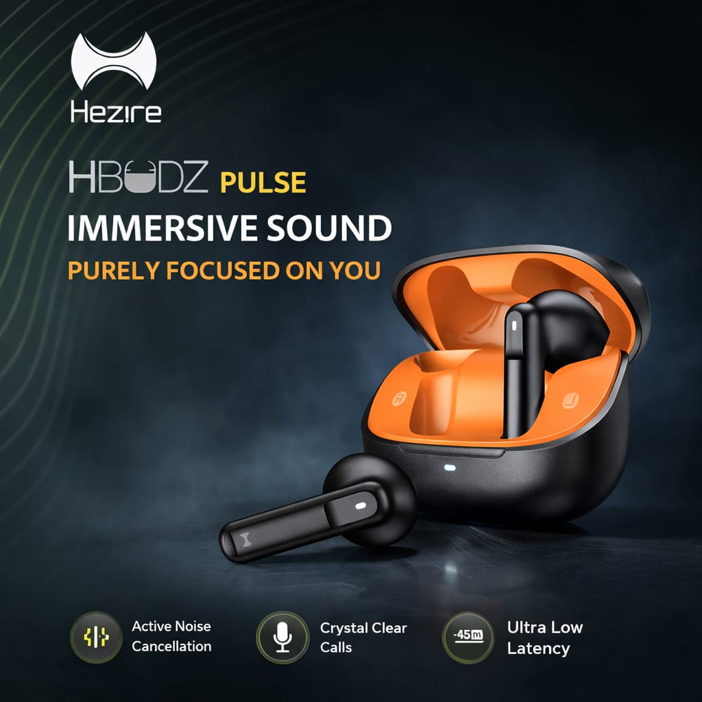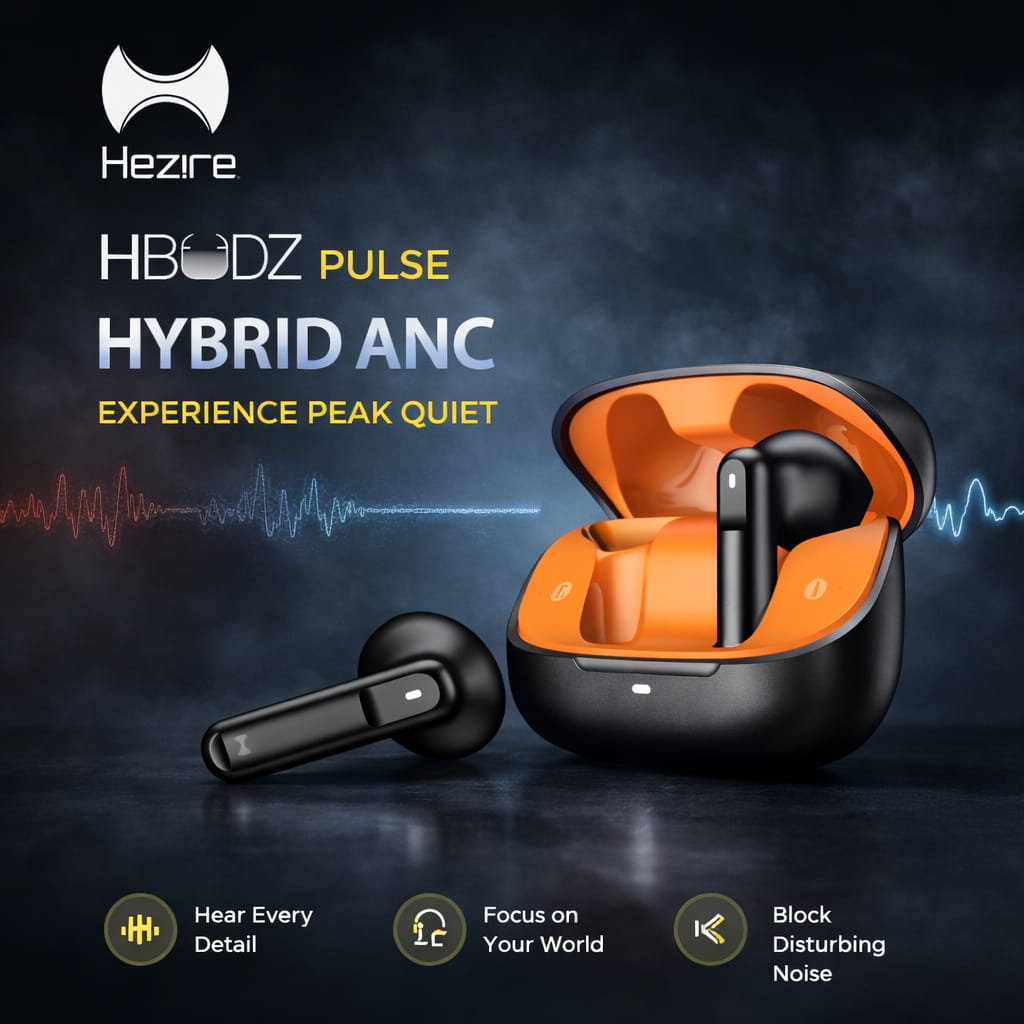 Experience premium sound clarity with the Hezire HBODZ Pulse Hybrid ANC Wireless Earbuds. Engineered with advanced Hybrid Active Noise Cancellation (ANC), these earbuds effectively block out unwanted noise, allowing you to focus on your music, calls, or work without distractions.