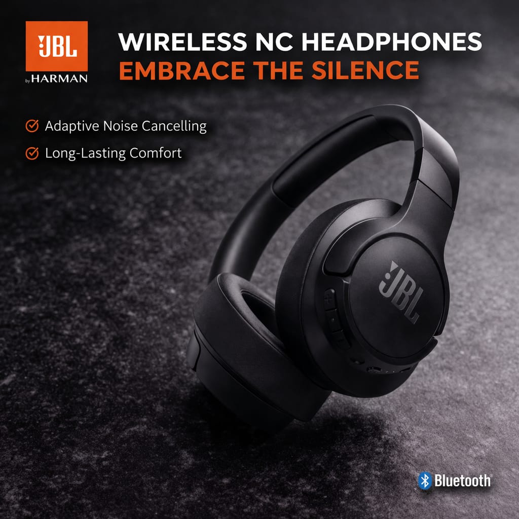 Experience premium sound quality with the JBL Tune 770NC Wireless Headphones, featuring advanced Adaptive Noise Cancelling technology. Designed to block out unwanted noise, these headphones allow you to fully immerse yourself in your music.