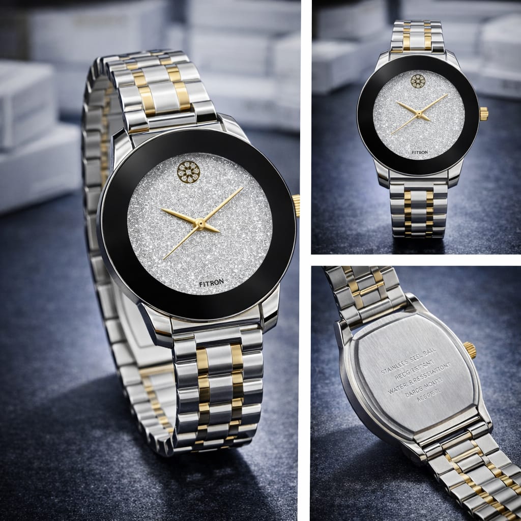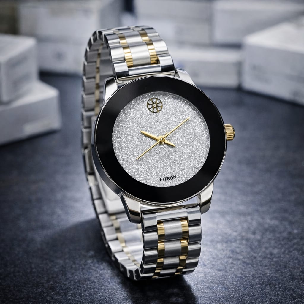Crafted with a durable stainless steel strap in a stylish silver and gold combination, it ensures both comfort and long-lasting wear. The minimalist dial design enhances its elegance, making it suitable for formal events, office wear, and everyday use.