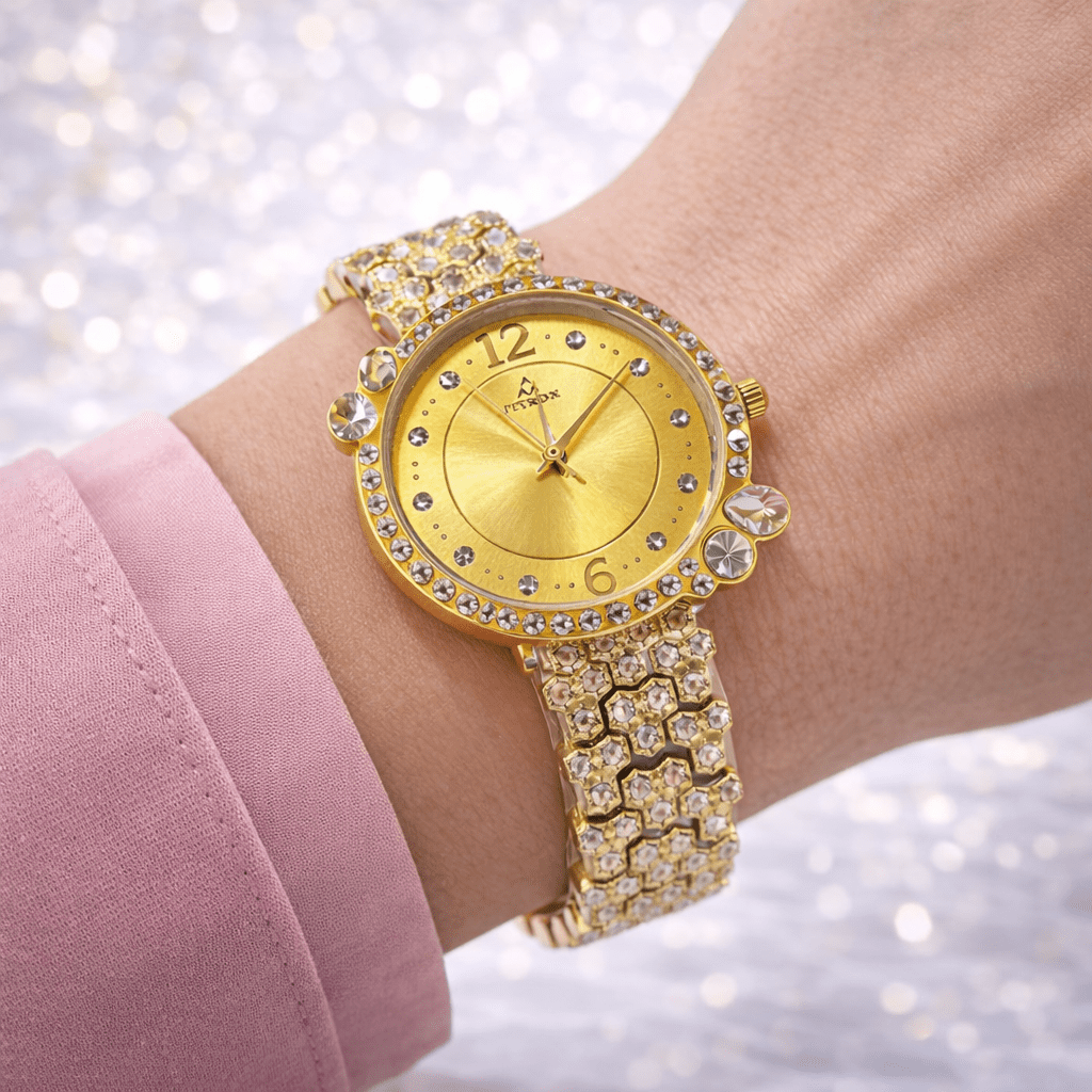 Crafted with a high-quality gold-tone alloy bracelet and durable case, it ensures long-lasting durability and comfortable wear. The crystal-studded bracelet and bezel create a jewelry-like appearance, making it ideal for parties, formal events, and everyday fashion.