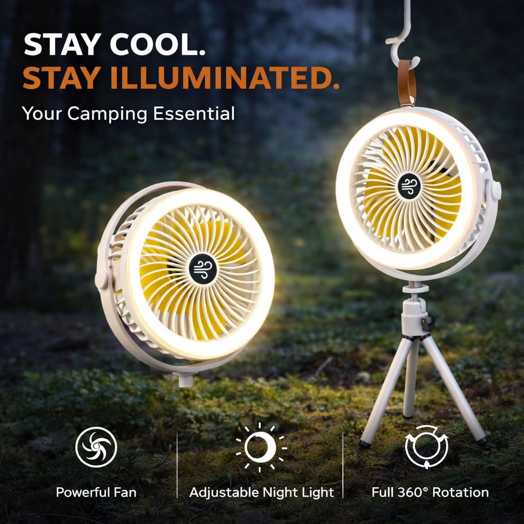 Stay cool and comfortable anywhere with this portable camping fan featuring a built-in LED ring light. Designed for outdoor adventures and indoor convenience, this multifunctional fan provides strong airflow along with soft lighting for nighttime use.