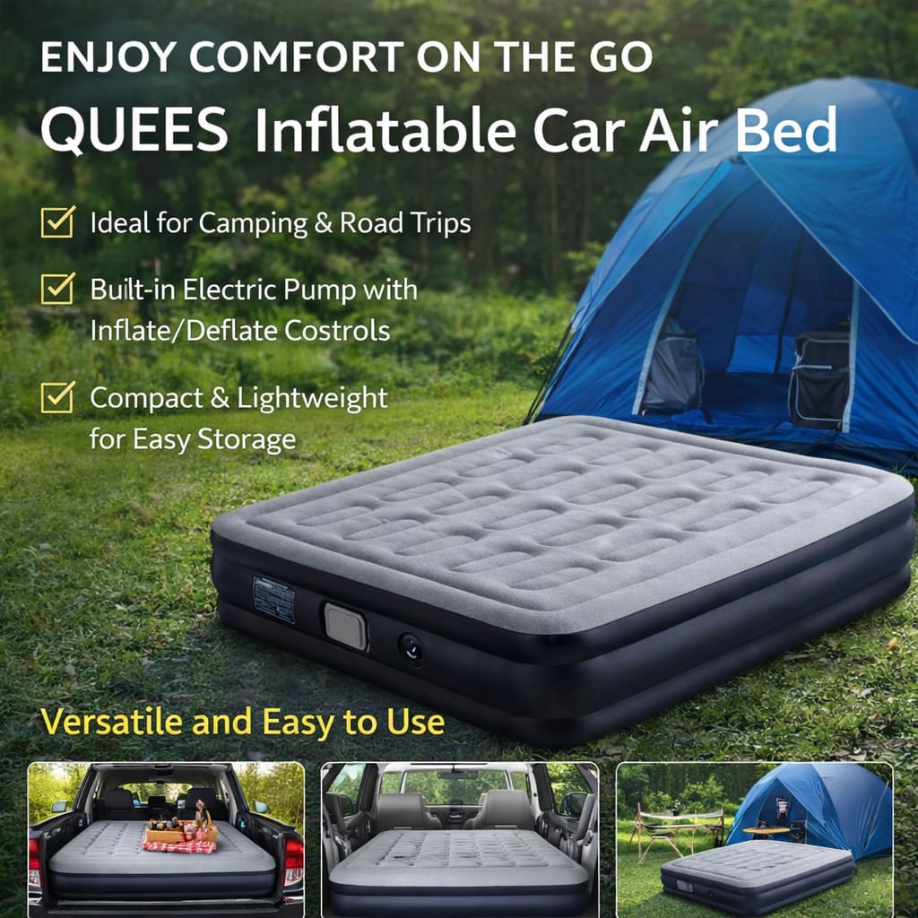 Enjoy comfort anywhere with the QUEES Car Air Bed, designed for travel, camping, and road trips. This inflatable mattress easily fits in your car, turning your vehicle into a cozy resting space. Made with soft, durable material, it provides excellent support and comfort for a relaxing sleep experience.