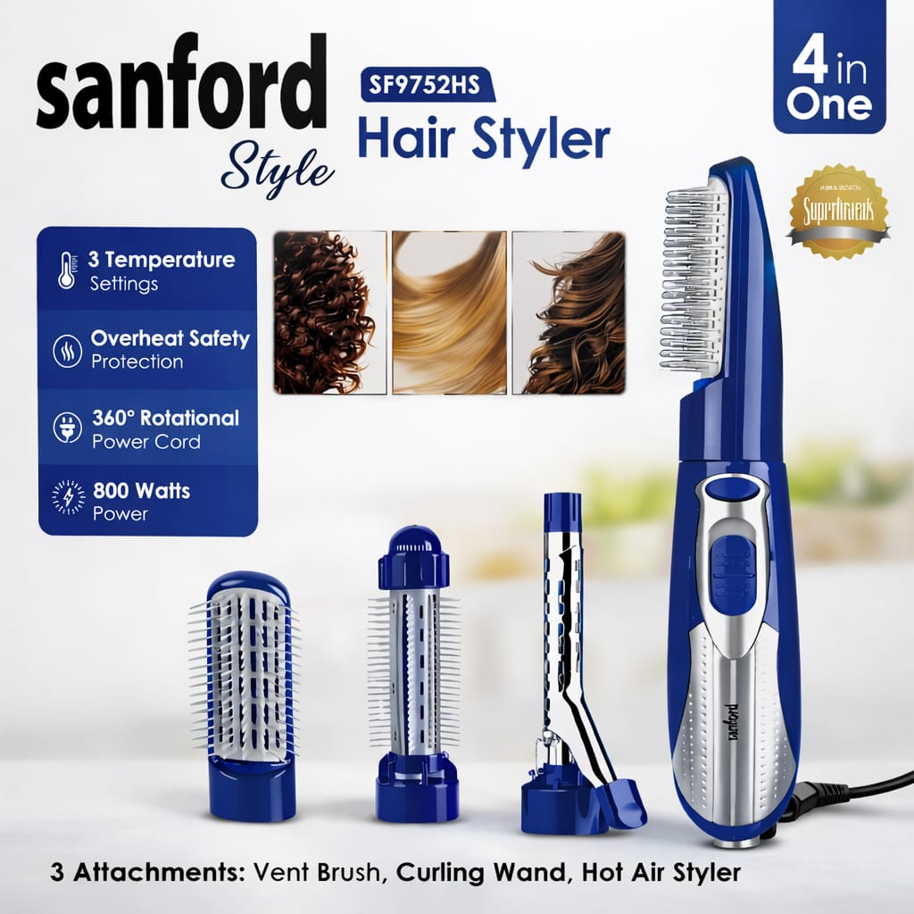 Create beautiful hairstyles effortlessly with the Sanford SF9752HS 4 in 1 Hair Styler. This versatile hair styling tool combines multiple functions in one device, allowing you to dry, curl, and style your hair with ease.