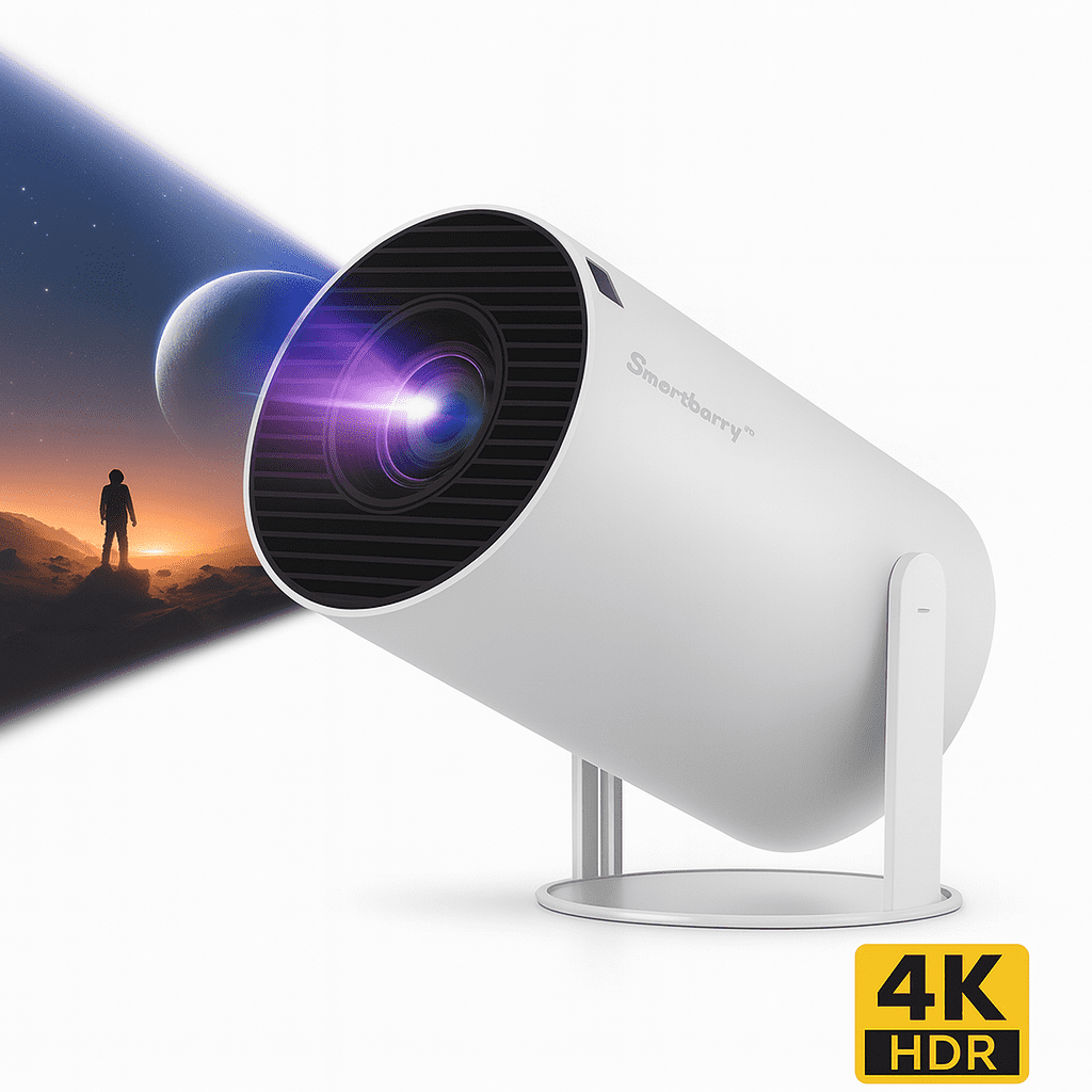 Experience cinematic entertainment at home with the Smartbarry HT88 4K HDR Projector. Designed for modern streaming and high-definition visuals, this projector delivers vivid picture quality, smooth wireless performance, and seamless app integration — all in one elegant and compact design.