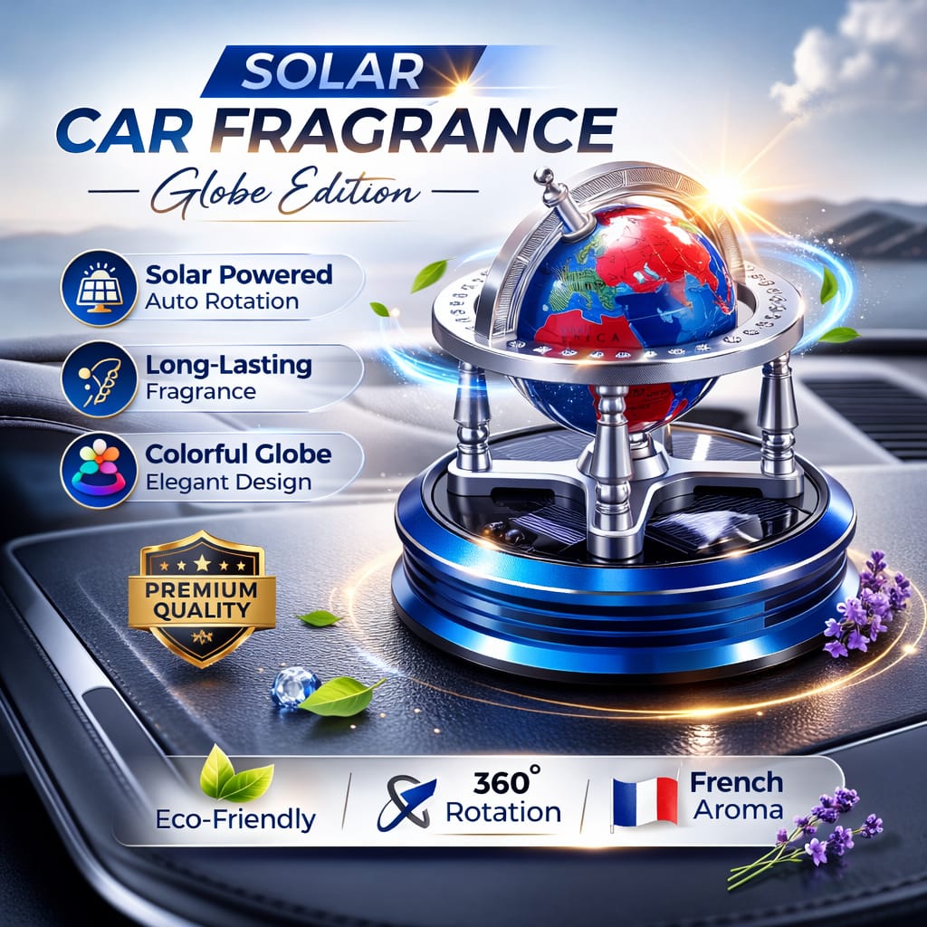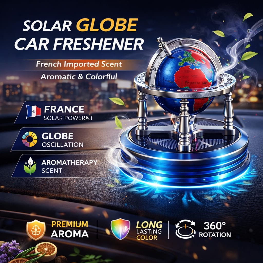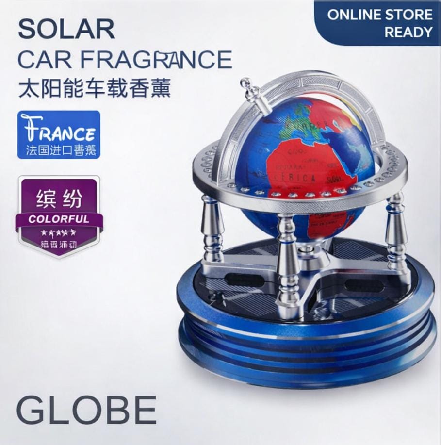 innovative car fragrance designed to keep your vehicle interior fresh while adding an elegant decorative touch. Powered by solar energy, the globe automatically rotates when exposed to sunlight, creating a unique and eye-catching motion on your car dashboard.