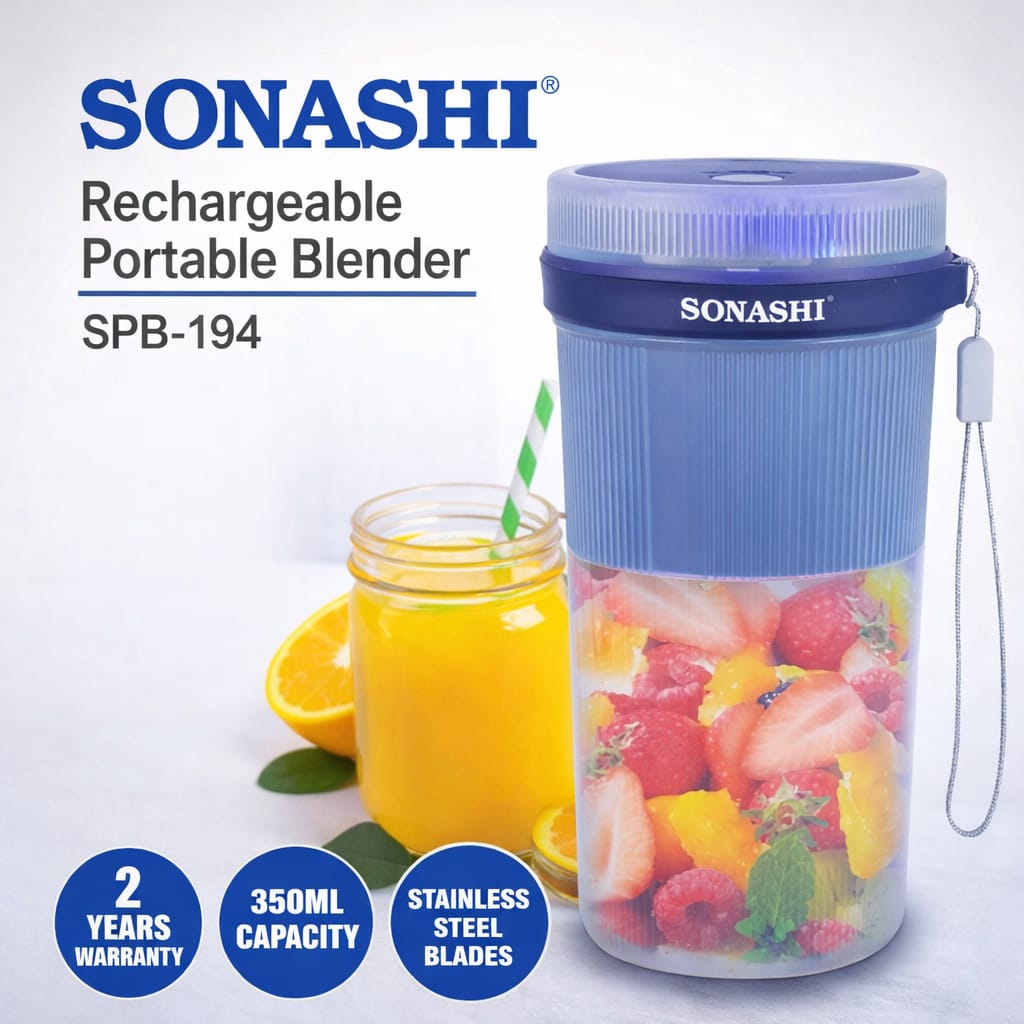 The Sonashi SPB-194 Rechargeable Portable Blender is a compact and convenient solution for preparing fresh juices, smoothies, and shakes anywhere. Designed for modern lifestyles, this portable blender allows you to enjoy healthy drinks at home, office, gym, or while traveling.