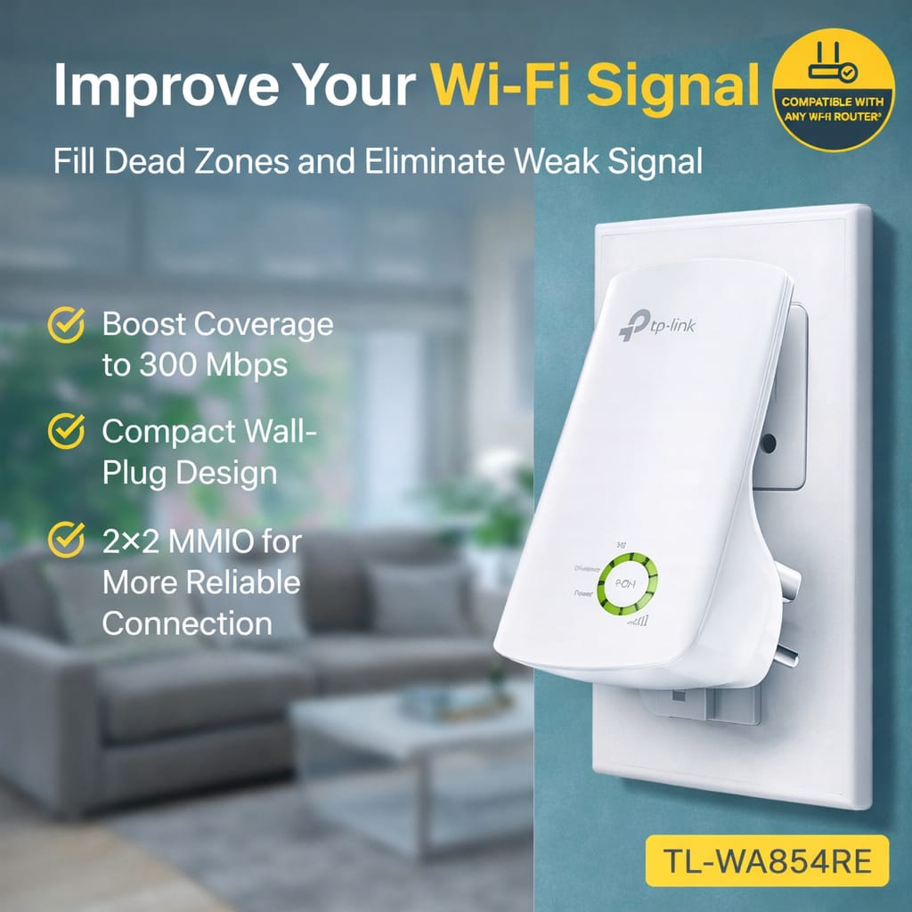 With speeds up to 300Mbps on 2.4GHz, it is perfect for streaming, browsing, and online activities. The compact wall-plug design makes installation simple, while the easy setup process allows quick connection with your router.