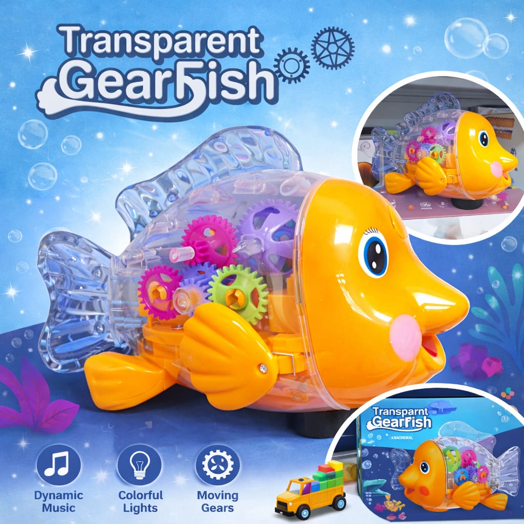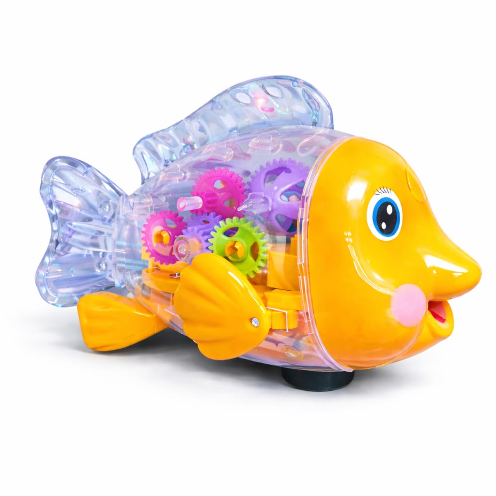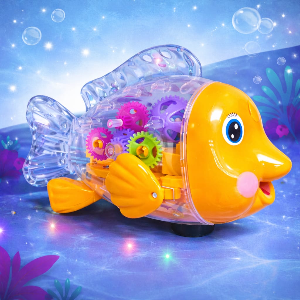 The toy comes with bright LED lights, dynamic music, and rotating gears, creating a captivating visual and auditory experience for children. As the fish moves, the internal gears rotate, helping kids understand simple mechanical movement while keeping them entertained.